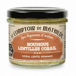 Ingrédients : CREME fraîche, pois chiches 28 % (dont sel), lentilles corail réhydratées 10 %, huile de colza, eau, gingembre, coriandre, épices, aromates, sel de Guérande, sucre, jus de citron concentré.